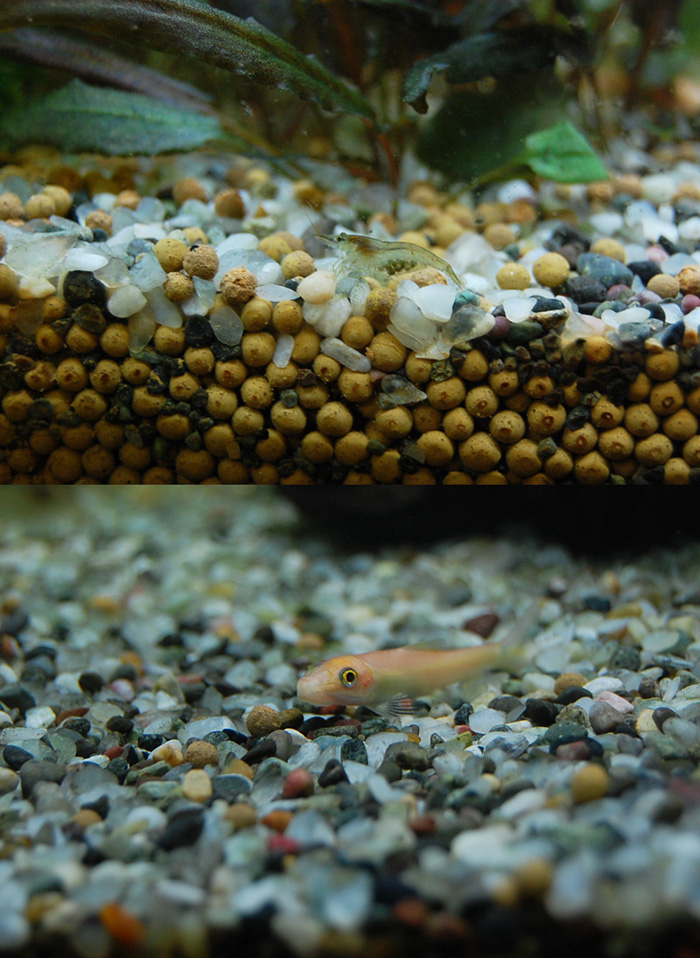 나는 수초를다듬고 돌을 칫솔로닦고,