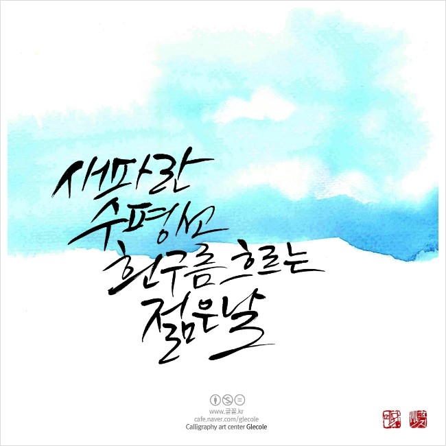 새파란 수평선 흰구름 흐르는 젊은날 [캘리그라피연구소:글꼴]